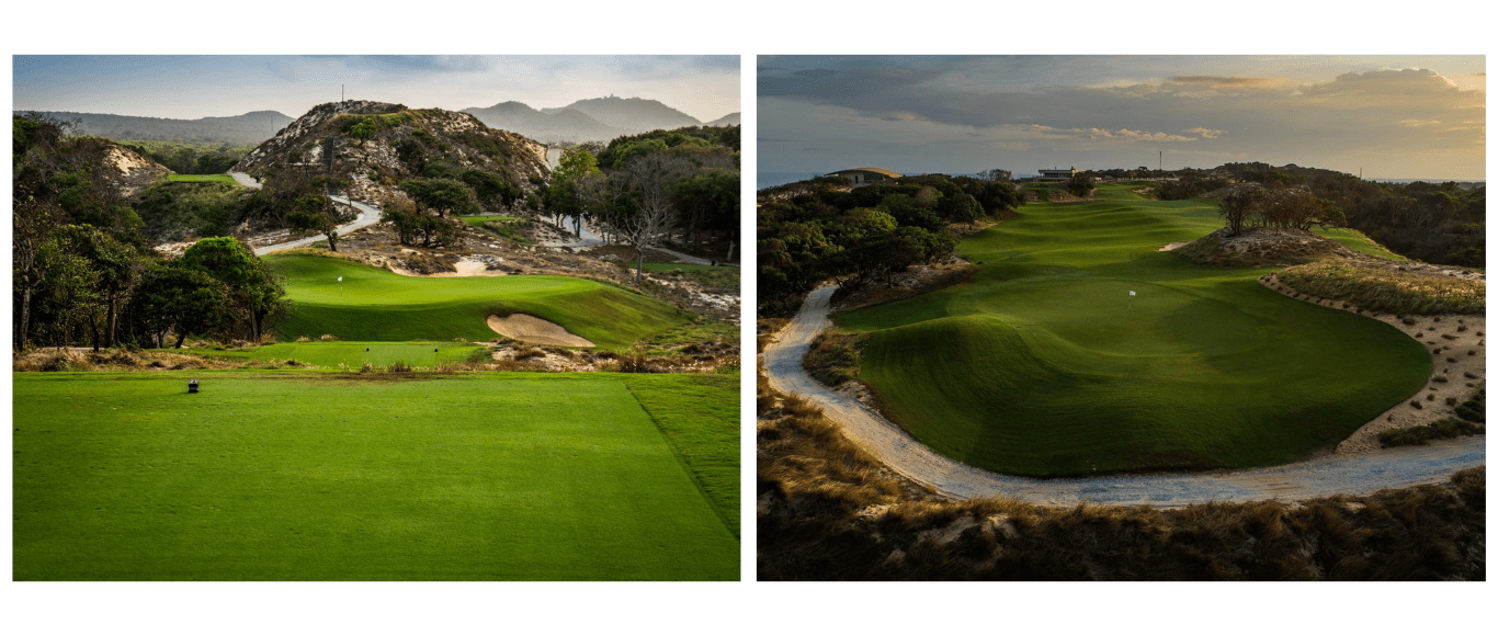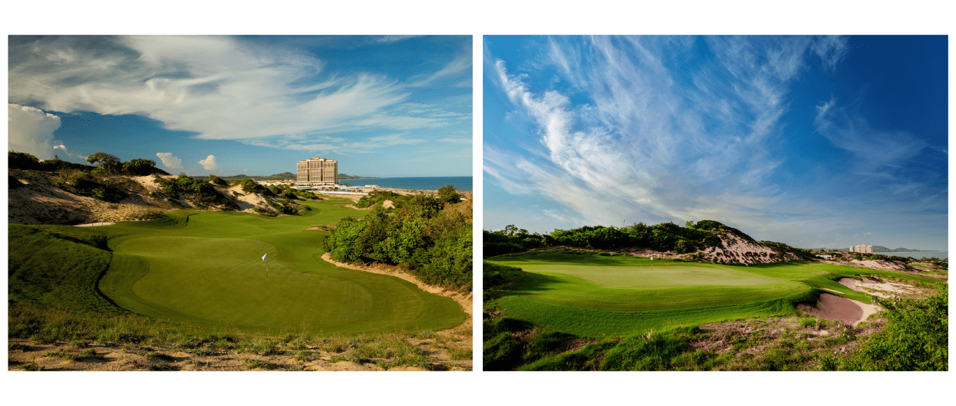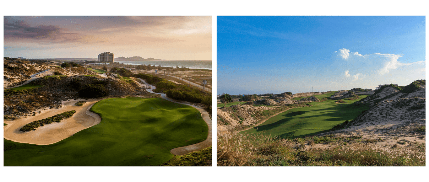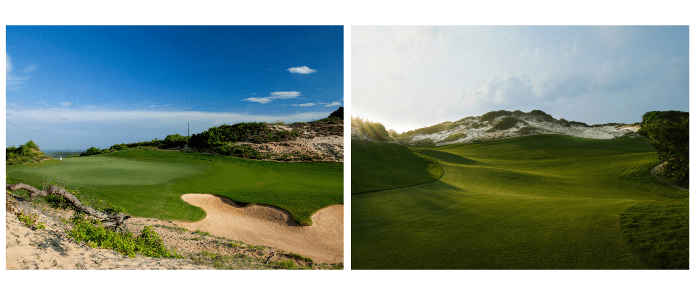 더블러프스 골프장. 50미터 높이의 거대한 모래언덕 사이로 펼쳐진 초록빛 페어웨이, 그 너머 남중국해가 끝없이 이어진다. 그레그 노먼이 "아일랜드 둔벡과 함께 내 인생 최고의 부지"라고 말한 곳이다.