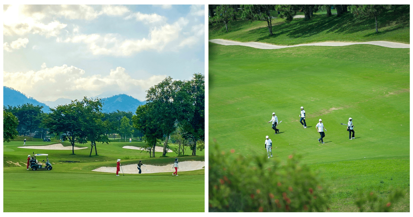 이 골프장의 가장 큰 특징은 동남아시아에서 유일하게 벤트그라스를 사용한다는 거예요. 티, 페어웨이, 그린 모두 벤트그라스로 되어 있어서 플레이 감각이 완전히 다르더라고요. 파 72의 18홀 코스로 7,009야드 규모예요. 스완흥 호수를 내려다보며 치는 골프가 정말 낭만적이고, 소나무 숲 사이로 펼쳐진 코스가 아름다웠어요. 프랑스 식민지 시대의 고풍스러운 분위기를 간직하고 있어서 마치 유럽의 어느 골프장에 온 듯한 느낌이 들어요. 골프 다이제스트와 베트남 골프 매거진에서 여러 차례 베트남 최고의 골프장으로 선정되기도 했어요.
