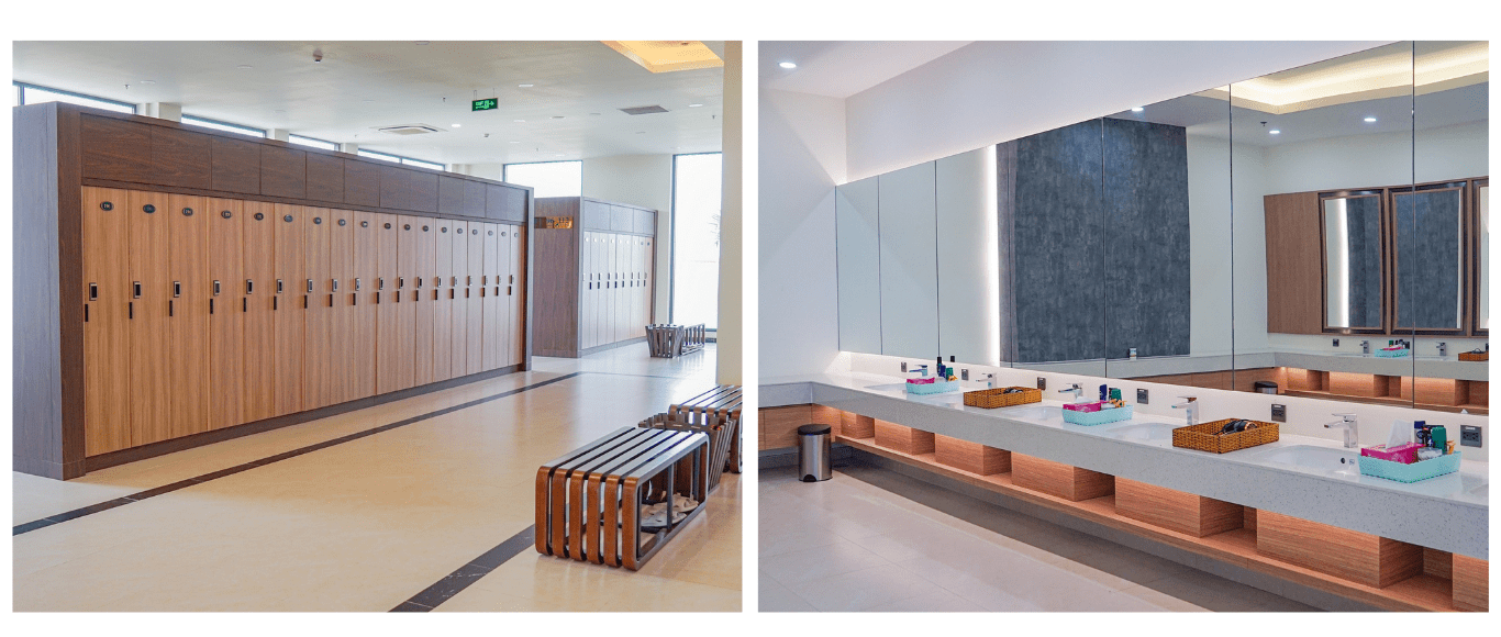 남성용은 락커 200개에 샤워실 20개, 여성용은 락커 78개에 메이크업 시설이 있어요. 사우나, 스팀룸, 자쿠지도 갖춰져 있어서 라운드 끝나고 땀 씻고 사우나 한번 하면 피로가 싹 풀려요.
