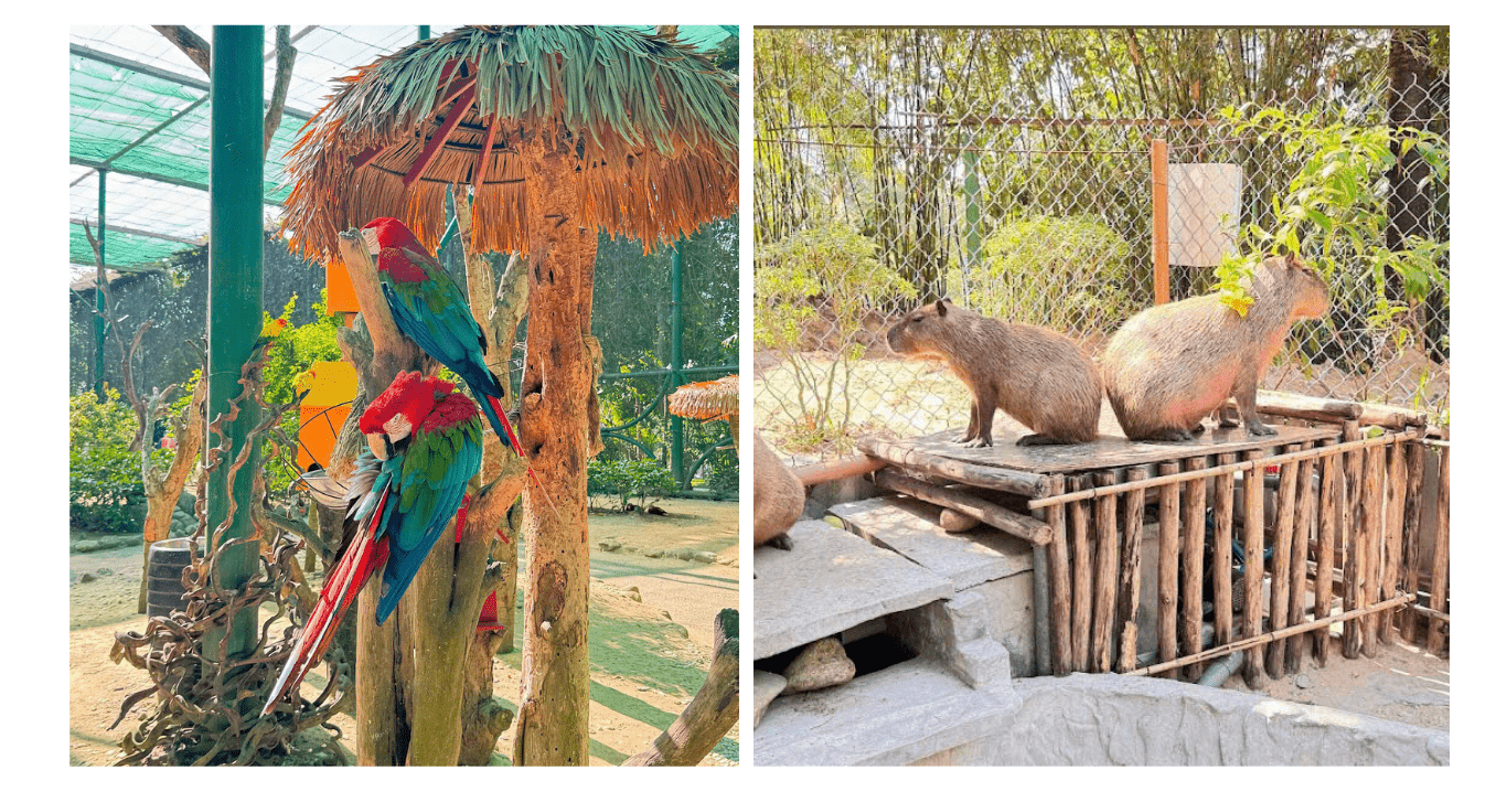 짜릿한 놀이기구들을 마음껏 즐긴 후, 이번엔 동물원 구역으로 향했습니다. 이곳에서는 형형색색의 앵무새부터 귀여운 카피바라, 타조까지 정말 다양한 동물들을 가까이에서 직접 볼 수 있었습니다. 그냥 조용히 산책하면서 맑은 공기를 마시는 것만으로도 마음이 정화되는 기분이었고 호이안일일투어를 이곳에서 보내기로 한 제 선택이 정말 최고였다는 생각이 들었습니다.
