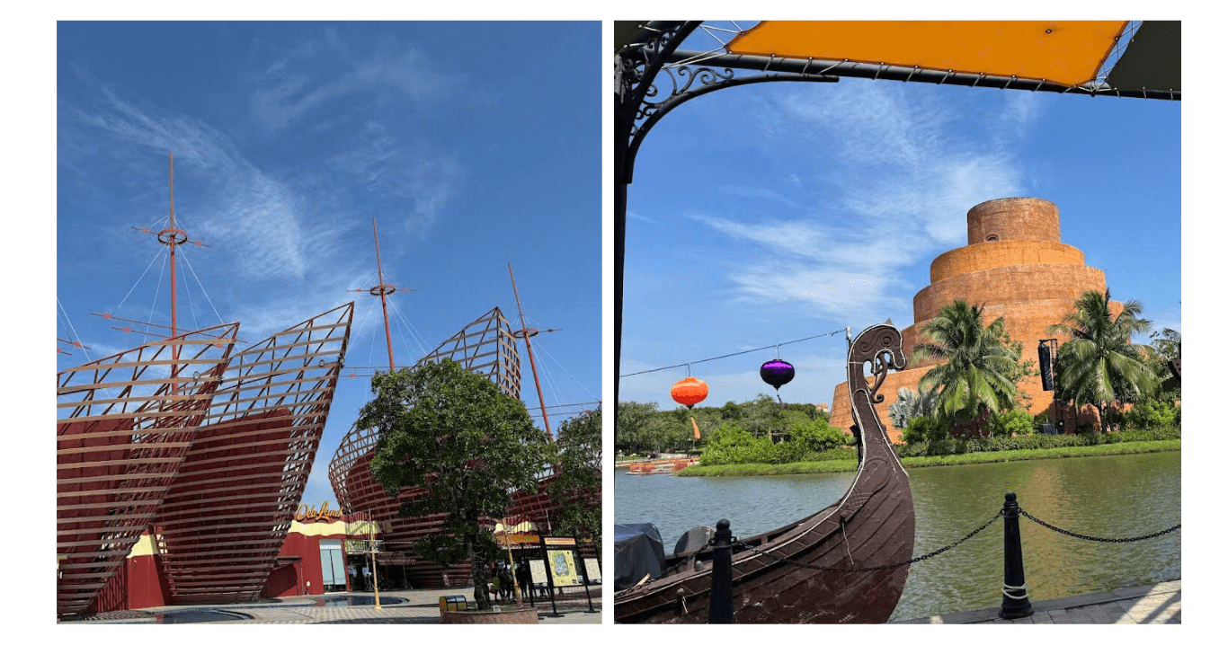 오후에는 민속 문화섬으로 향했습니다. 이곳에서는 베트남 북부, 중부, 남부 세 지역의 전통 가옥을 직접 둘러보며 각 지역마다 집의 구조와 건축 양식이 다르다는 사실을 새롭게 알게 되었습니다. 또한, 동호 그림 그리기, 도자기 만들기 같은 베트남 전통 수공예 체험도 해볼 수 있었는데요, 만약 아이들과 함께 온다면 정말 특별한 체험이 될 것 같다는 생각이 들었습니다. 문화 공연도 열린다고 들었는데, 아쉽게도 저는 그 시간대를 놓쳐서 보지 못했습니다.