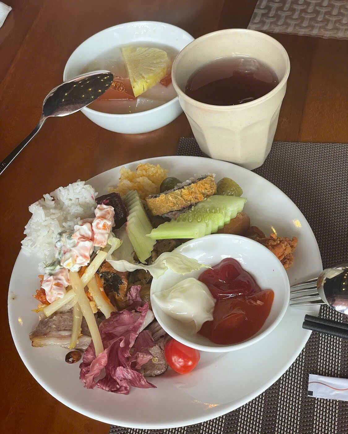 몇 바퀴를 돌며 놀다 보니 슬슬 배가 고파지기 시작했습니다. 그래서 근처 레스토랑에 들러 점심을 해결했습니다. 오전 내내 신나게 놀아서 그런지 평범해 보이던 음식도 유난히 맛있게 느껴지더라고요. 든든하게 배를 채우고 나니 다시 에너지가 충전되는 느낌! 이제 남은 오후, 빈펄을 제대로 정복하러 출발해야죠!