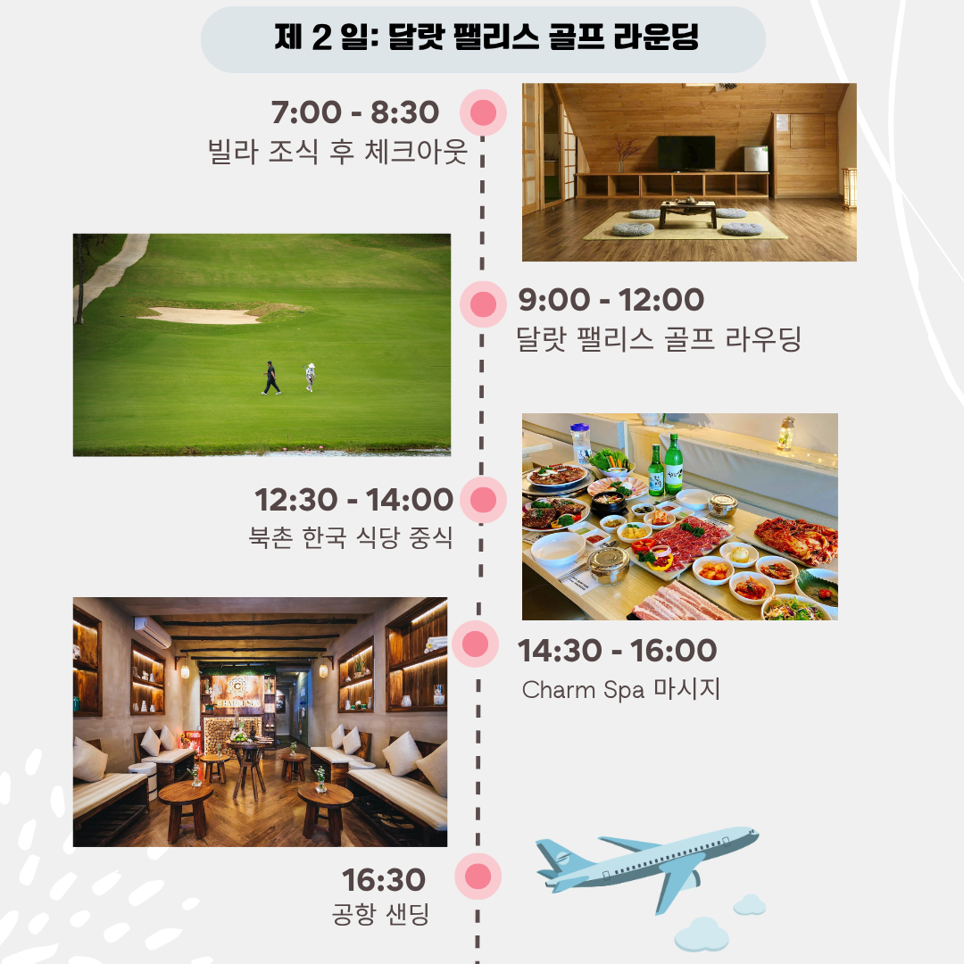 달랏에서 골프와 함께프라이빗 빌라에서 여유롭게 휴식할 수 있는 1박 2일 투어입니다.