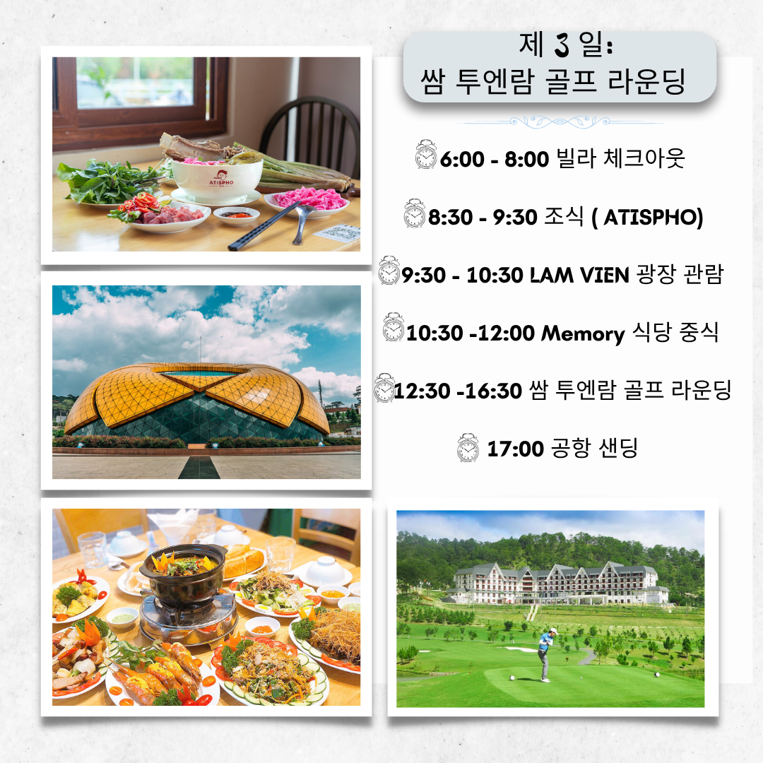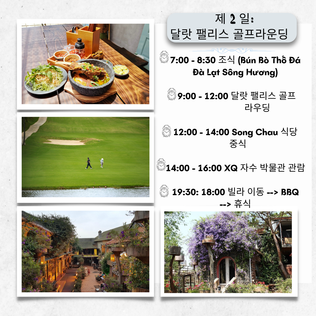 달랏에서 골프와 함께프라이빗 빌라에서 여유롭게 휴식할 수 있는 2박 3일 투어입니다.