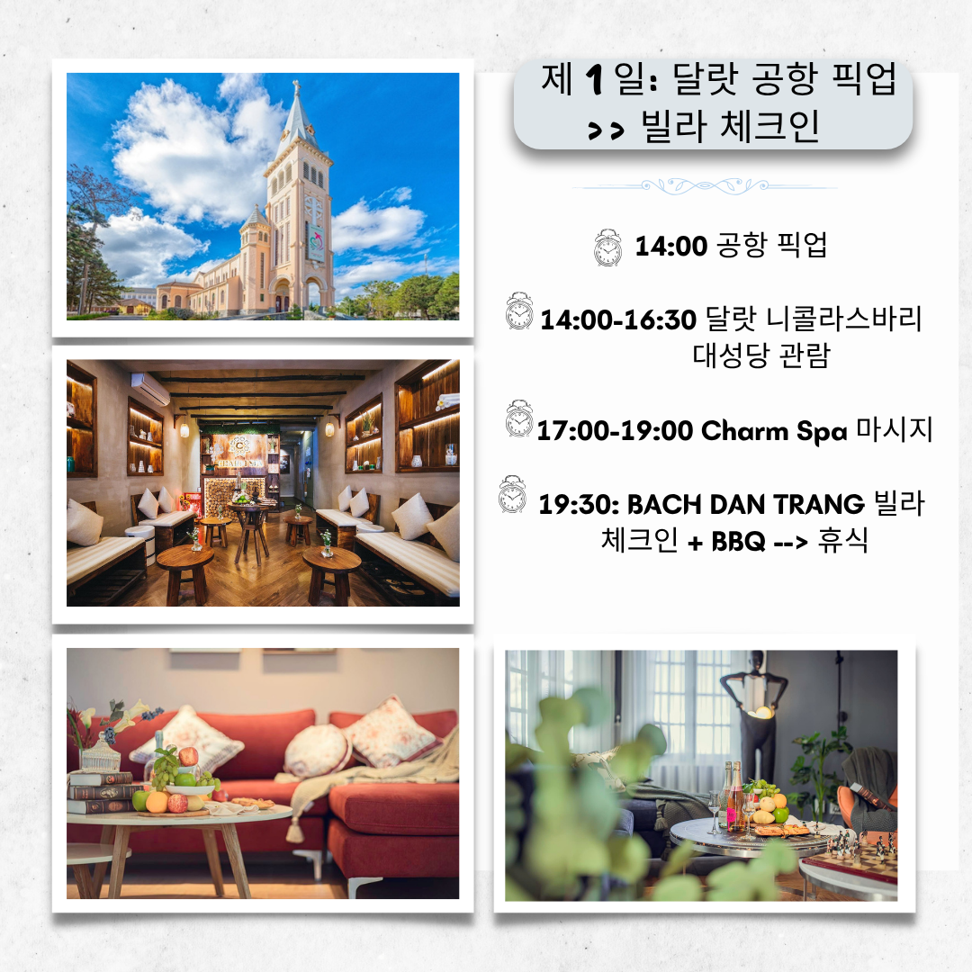 달랏 명소 관광, 90분 마사지, 4베드룸 넓은 빌라 제공