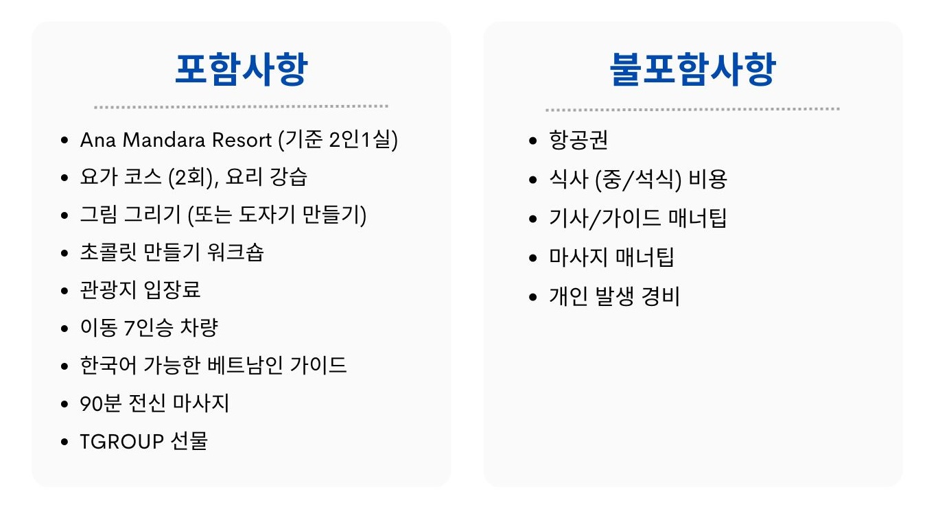 - 이상 요금은 베트남 공휴일에 적용되지 않습니다. 주말 및 공휴일에 예약 원하시면 티그룹 카카오톡으로 별도 문의 부탁드립니다. (티그룹 카카오톡은 @티그룹 입니다)
